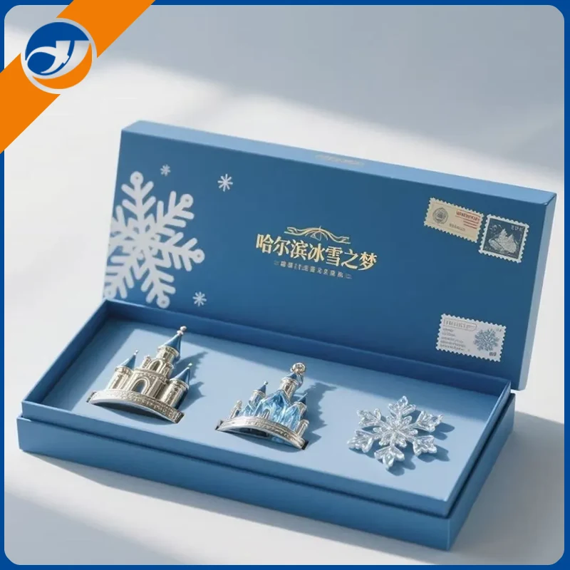 Demagnetisk gaveeskeer konstruert av papp med høy tetthet eller miljøvennlig fiberplate, dekket med en taktil spesialpapir, matt film eller skinnteksturert materiale, og legemliggjør et luksuriøst preg.